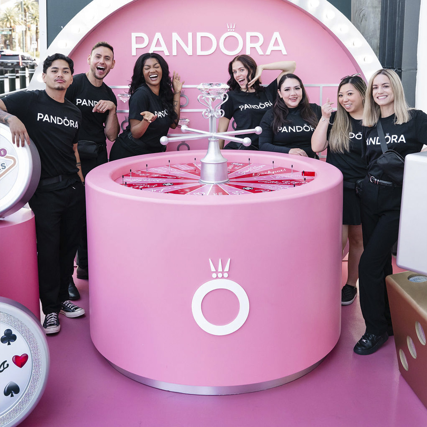 Pandora’s Las Vegas flagship was introduced through an immersive retail experience designed to channel the energy, spectacle, and visual drama of the Strip. The concept translated the brand’s playful identity into a spatial narrative inspired by casino culture, blending bold graphic statements with interactive moments that turned the store opening into a destination rather than a traditional launch.